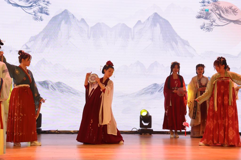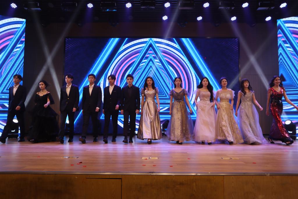 晚会进入第二章:春熙。研究生与本科同学带来的爵士舞蹈串烧《爱你》《what is love》《shut down》,各位舞者青春昂扬的舞姿引发全场阵阵喝彩;学生朗诵《青春礼赞新时代,峥嵘百年新征程》饱含敬意与激情,激励大家不做空想,不骛虚声,厚德笃志,守正创新;模特走秀《youth》将气氛带入高潮,男生女生们身着笔直的西装与华丽的礼服,步伐潇洒自信,神采飞扬,现场尖叫不断;师生合唱《带我去很远地方》以轻柔抒情的歌喉将梦想与自由倾注在音乐中、回荡在观众耳畔,展现了我院师生同心同德,共创美好的师生情谊和公管情怀。