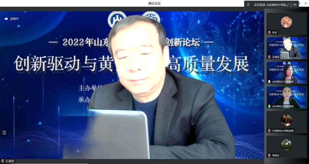 本次论坛通过线上方式进行,以“创新驱动与黄河流域高质量发展”为主题。来自西安交通大学、美国北卡罗来纳大学、中国人民大学、山东大学、山东社会科学院等高校与科研单位的专家学者,来自北京大学、浙江大学、复旦大学、山东大学、中国财政科学研究院、中国矿业大学、上海财经大学、山东财经大学、南京审计大学、安徽财经大学、江西财经大学、山东师范大学、曲阜师范大学、南京财经大学、山西财经大学等高校与科研单位的专家学者、研究生共计200余人参加了交流讨论。