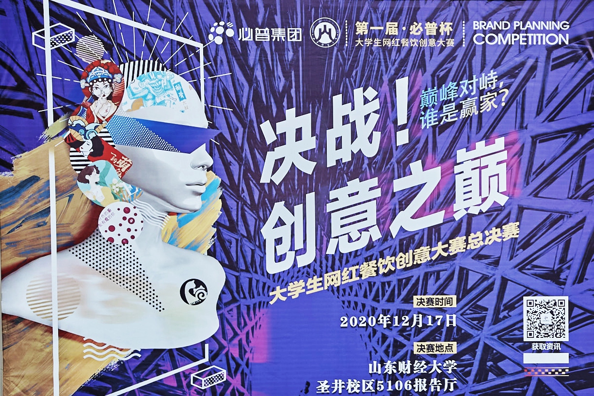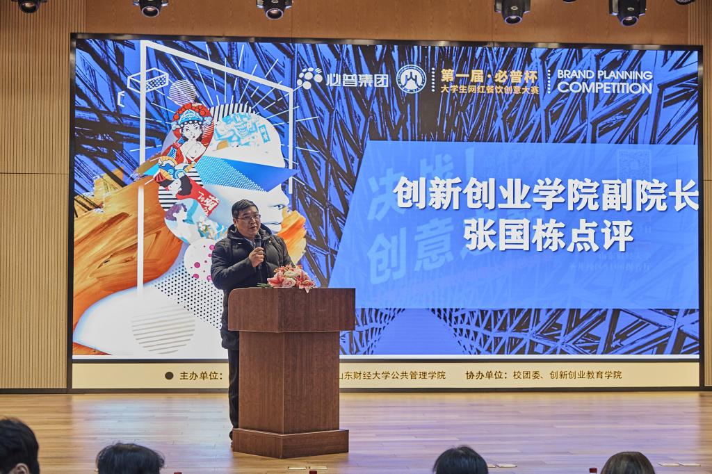 (通讯员 张茜 马丽 张晓晴 摄影 陈慧敏 张涵睿)为进一步培养大学生的创新意识和实践能力,激发广大青年学生的创新创业潜力,我院与校团委、创新创业教育学院、必普集团联合举办山东财经大学第一届“必普杯”大学生网红餐饮创意大赛,此次比赛是学校跨界融合创新的有益探索和尝试,一经发起,就得到了全省各高校的积极响应,组委会共收到有效作品231份,经过初赛和复赛两轮评审,最终遴选出 10 支队伍晋级决赛。12月17日下午,决赛于圣井校区文化活动中心成功举行。