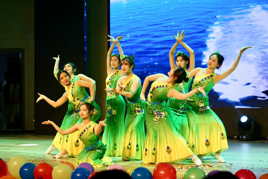 晚会在活力四射的啦啦操中拉开帷幕,学院啦啦队带来的《我最红》,高难度的动作与整齐划一的跳跃,演绎青春奔放之美感,迅速点燃了全场的气氛。