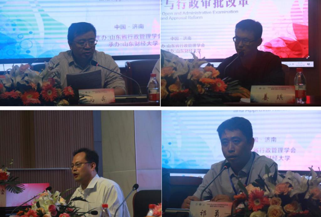 本次会议中,来自对外经济贸易大学、首都经济贸易大学、江西师范大学、南开大学、南京师范大学、华北水利水电大学、山东大学、山东师范大学、青岛大学、中国石油大学(华东)、济南大学、山东农业大学、聊城大学、山东政法学院、山东省社会科学院、中共山东省委党校、东营市委党校、日照市委党校等单位的公共管理学院、学科负责人,来自中国行政体制改革研究会、国家电力投资集团公司、国务院研究室社会发展司、中华人民共和国司法部、山东省人民政府、山东省民政厅、山东省社会科学界联合会的专家领导,来自《中共中央党校(国家行政学院)学报》《中国社会科学报》《山东大学学报(哲学社会科学版)》《山东社会科学》《东岳论丛》《经济与管理评论》等期刊的主编、编辑和记者,以及学会理事、会员以及山东财经大学公共管理学院师生共计百余人共同围绕“政务公开与行政审批改革”这一主题展开深入交流与讨论。在总论坛中,共有三位领导做开幕致辞,三位权威专家做大会主题报告;在分论坛中,有数十位专家学者做分论坛发言。