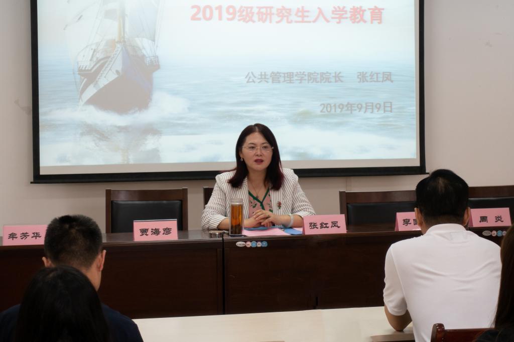 (通讯员:李昭娜、高文燕,摄影:吴聪)2019年9月10日上午9点半,我院在燕山校区4407举行了2019级研究生新生入学教育暨与院领导见面会。党委书记李国强、院长张红凤,党委副书记周炎、吕晓燕,副院长贾海彦,MPA中心副主任牟芳华,辅导员李昭娜以及2019级全体研究生出席此次会议,会议由副院长贾海彦主持。