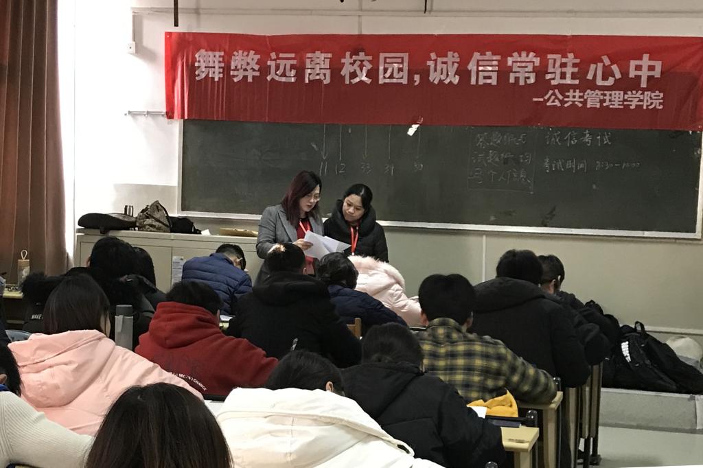 学院通过召开全体教工会议,传达贯彻相关文件,就加强学院期末考试管理工作提出要求。成立了以院长张红凤、书记李国强为组长,副院长路军、副院长贾海彦、副书记周炎、副书记吕晓燕、督导组成员常春凤为副组长,学院教学秘书、辅导员、系主任为成员的考试工作小组,进一步规范学院期末考试管理,落实教师监考职责,严把试卷命题质量,端正考风、严肃考纪,加强考试巡查工作。通过考前签订诚信承诺书、考场悬挂诚信考试标语等活动,营造诚信考试氛围。