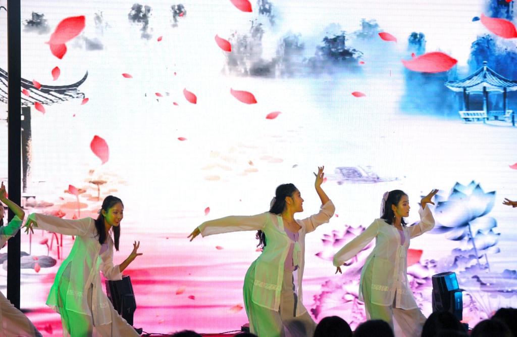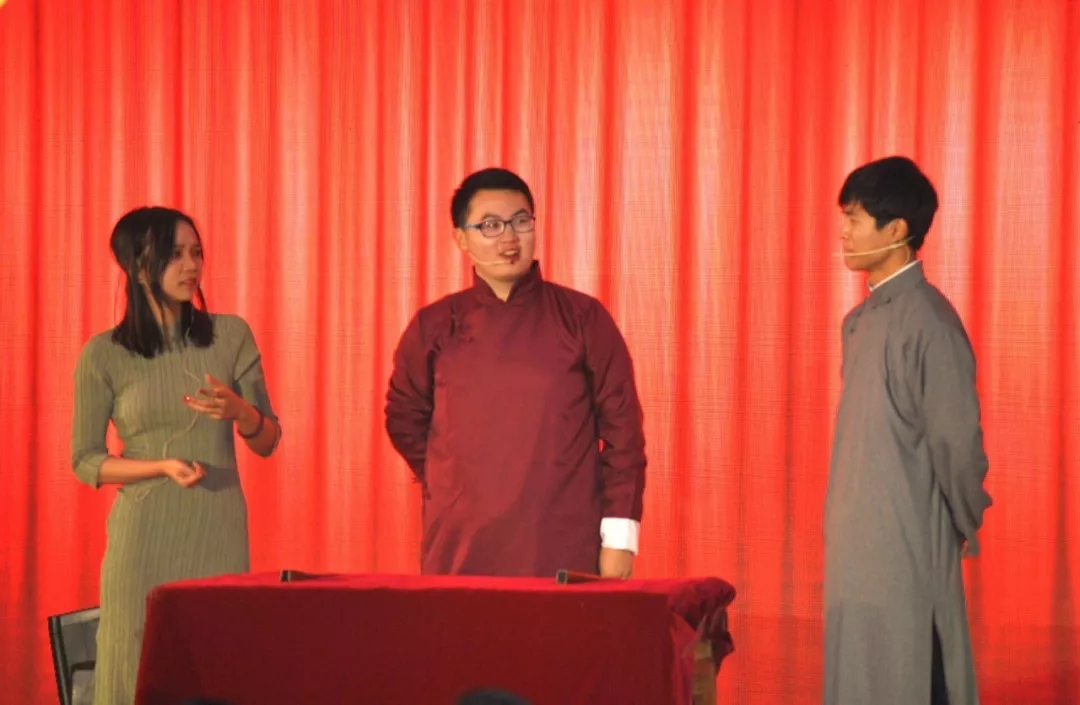 晚会的第二篇章,青春公管·丰翼。大学是起点、是成长、是青春,不用惧怕、不用退缩。民族乐器合奏《武林拾忆》作为开篇,萧、笛、古筝声悠悠;木鱼、鼓声阵阵,乐器种类丰富,表现形式多样,结合水墨武功动画背景,给人震撼感受。拉丁舞表演《燃情拉丁》,展现了动感、深情等不同风格的拉丁舞台,令人惊叫连连。相声表演《大学图》更是爆点连连,贯口、快板等高超技艺的展现层出不穷,搏得满堂喝彩。我院辅导员韩步彤老师携手管科院辅导员邹冲为大家带来精彩演唱《沙漠骆驼》,动听的歌声和热情的互动,将晚会的气氛推向高潮。