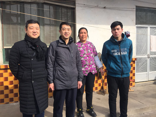 (通讯员:周炎 李旭日)为深入学习宣传贯彻党的十九大精神,全面贯彻落实全国全省高校思想政治工作会议精神,坚持围绕学生、关照学生、服务学生,着力构建政府、学校、社会和家庭教育相结合的“四位一体”大学生思想政治教育新模式,努力培养担当民族复兴大任的时代新人。按照中共山东省委教育工委《关于进一步深化全省高校辅导员家访活动的通知》(鲁教工委通字[2018]4号)和学校的有关要求,1月30日我院党委副书记周炎带领辅导员李旭日老师到淄博淄川区西河镇马家庄村和张店区四宝山街道南岭新村走访困难学生家庭,送去了学校统一补助的600元慰问金和学院为困难家庭购买的油、鸡蛋等过年物品。