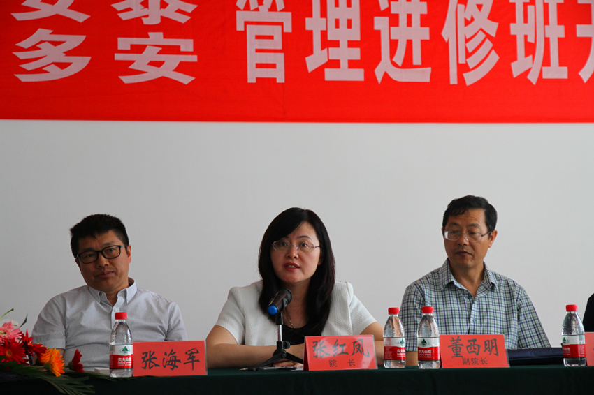 张红凤院长代表山东财经大学公共管理学院发表了致辞,简要地介绍了山东财经大学公共管理学院的发展宗旨、发展理念、院训、学科发展、人才队伍建设、科学研究、社会服务等,特别介绍了学院正在实施的“开门办学”——“院府合作”、“院企合作”、“院院合作”,以及开展的智库式的“政产学研”深度合作,表示基于学院的跨越式发展及其雄厚基础,作为培训的承办方将有能力办好这次培训,为本次培训精心设置培训课程,精心提供优质师资,精心提供精准服务。她期望学员在培训期间静心听课,学有所成。