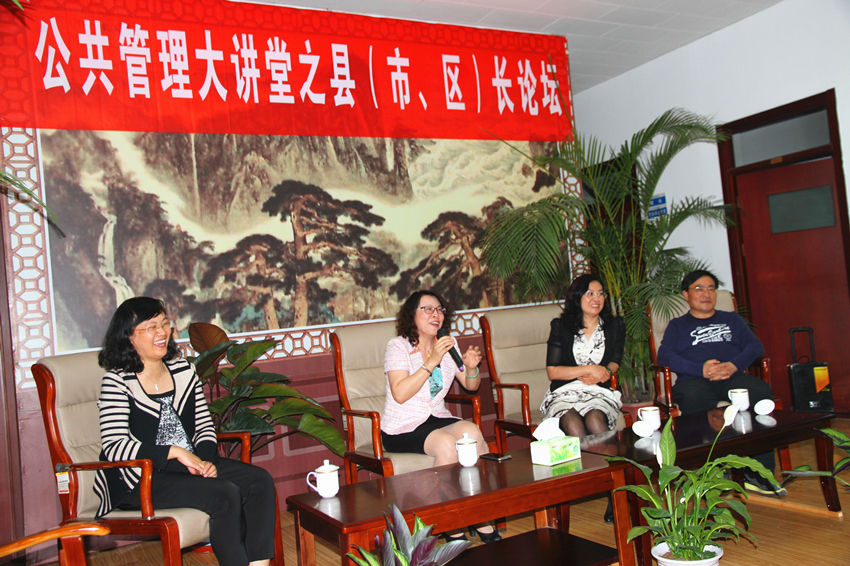 5月4日,应张红凤院长邀请,青岛市李沧区副区长孙晋华,济南市槐荫区副区长印东,淄博市沂源县副县长李玲,淄博市周村区副区长李寅萍出席公共管理大讲堂之县(市、区)长论坛。论坛由公共管理学院副院长李国锋主持,院长张红凤致欢迎辞。我院2014、2015级研究生和学院骨干教师参加了此次论坛。