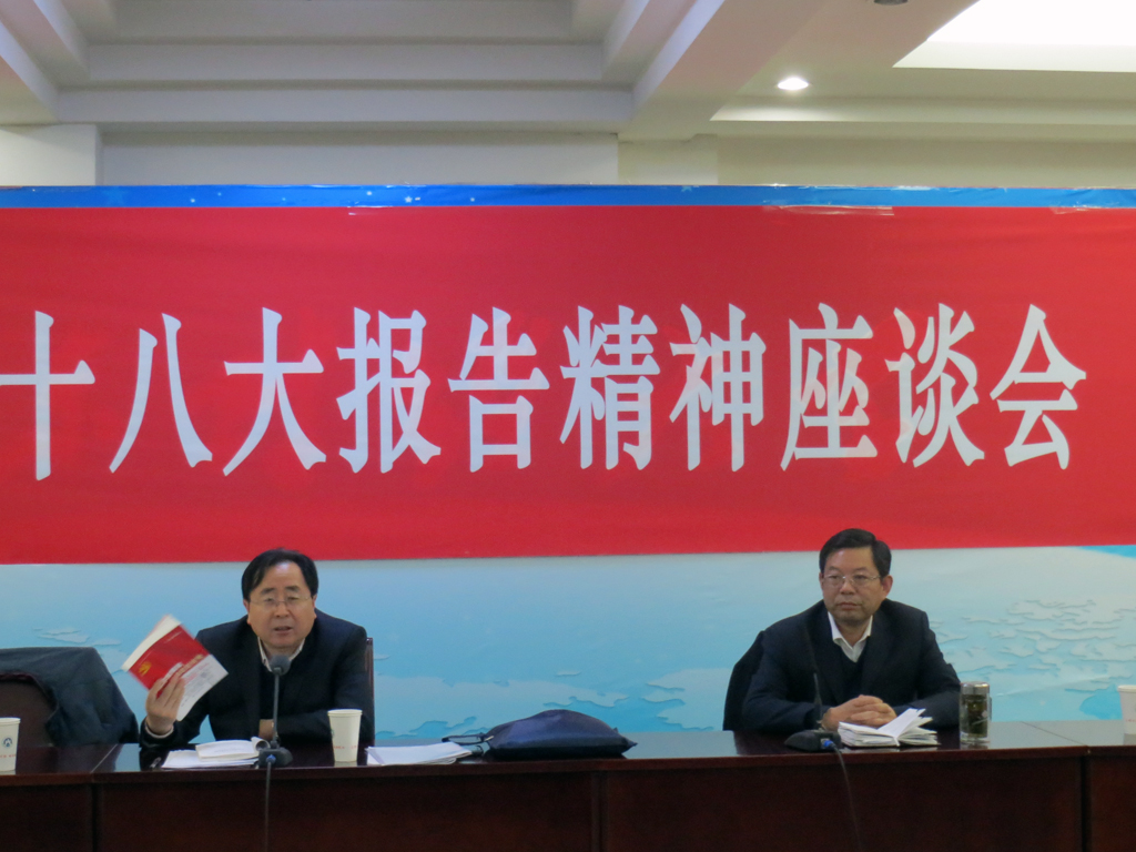 12月13日下午,山东省社会科学界联合会副主席周忠高应邀在我校燕山校区办公楼七楼会议室作了题为《学习党的十八大精神,加强社会科学研究》的报告。公共管理学院全体教师和学生党支部书记聆听了报告,王有志书记主持了报告会。