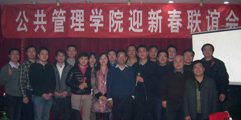 王玉华副校长在晚会上致辞,代表校党委行政对公共管理学院的全体教职工致以最诚挚的节日祝福,对公共管理学院在2011年的工作给予了高度评价,从三个方面对2012年公共管理学院的工作提出了新期待和要求,一是人才培养上层次,二是学科建设上水平,三是科研工作上台阶。