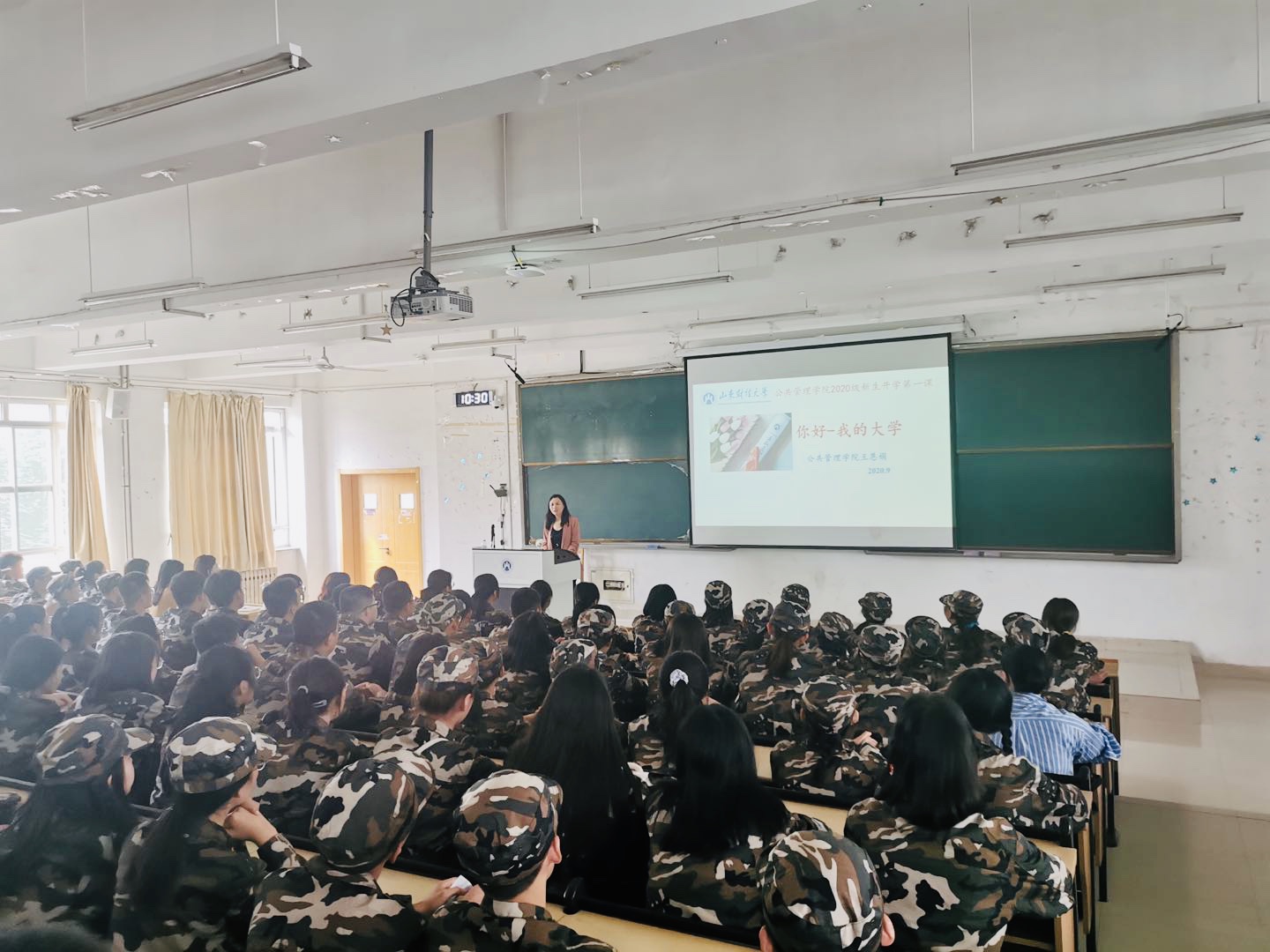 本次课程围绕“你好,我的大学”主题展开。王老师以哲学的“人生三问”引导同学们认真思考“我是谁”、“我为什么选择山财大”、“我应该怎么做”?让同学们通过积极的自我探索,做出正确的自我认知和专业认知。同时,对全体学生如何度过大学生活提出四点建议:一是学会学习。指出从中学生到大学生的身份转变,不仅仅是简单的年龄变化、校园变化。也包括学习方法的变化。大学生活应以学习为重。希望大家养成自主学习、持续学习的好习惯。二是学会生活。做一个独立自强的个体。三是学会做人。首先要懂得感恩,讲究合作和奉献。好好爱自己,才能有能力去爱护和帮助别人。四是学会做事。做正确的事。做一个自律有担当的人。尤其强调精彩的大学生活不应当是轻松的、懒散的。希望同学们按照《学生手册》的要求,做好自我管理与监督。结合当前疫情防控“常态化”的特点,强调学校是学生集体生活的场所,易导致交叉感染。因此,作为学生更应当做好充足的防疫准备。服从学校管理,把保护自身安全健康放在第一位, “非必要不外出”。同时,养成良好的卫生习惯。坚持一日三测一打卡。如有体温异常要及时上报并做好相应的防护措施。