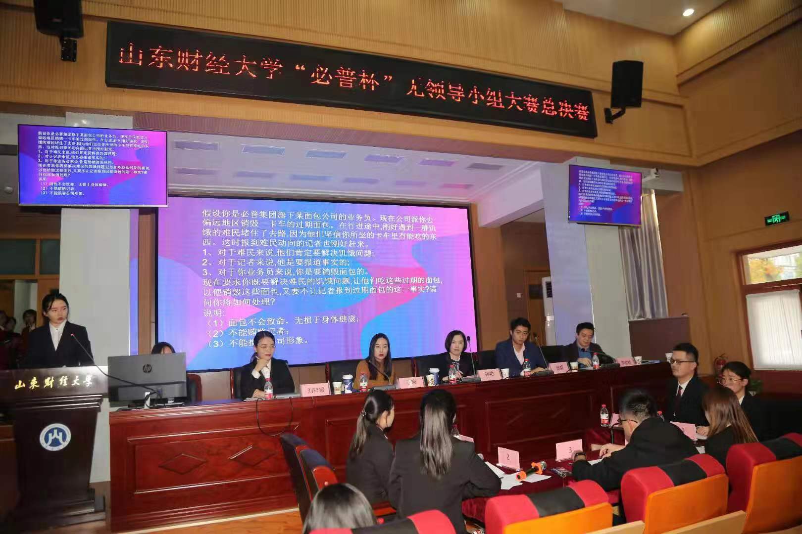 为了全方面提高大学生的综合素质以及应对面试的能力,以便其在求职中脱颖而出,山东财经大学于2019年11月14日在三号报告厅举办了“必普杯”无领导小组讨论大赛的决赛。本次比赛由山东财经大学就业指导处主办,由公共管理学院、法学院、计算机科学与技术学院、艺术学院联合承办。同时本次活动也得到了必普电子商务集团股份有限公司、金现代信息产业股份有限公司与北京知金大鹏教育科技有限公司的大力支持。