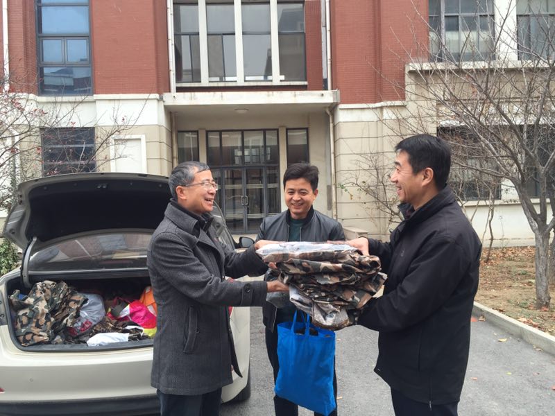 (通讯员 赵福荣)为培养广大新生的爱心奉献精神,增强旧物循环利用的环保意识,11月17日上午,我院向我校对口支援单位鄄县左营乡捐赠150余套军训服装,包括上衣、裤子、帽子以及鞋子,这些军训服全部来自公共管理学院2017级新生的自愿捐献。我校省派第三轮第一书记高峰、杨杰、谷雪峰、我院党委副书记周炎、辅导员张辉参加了捐赠活动。