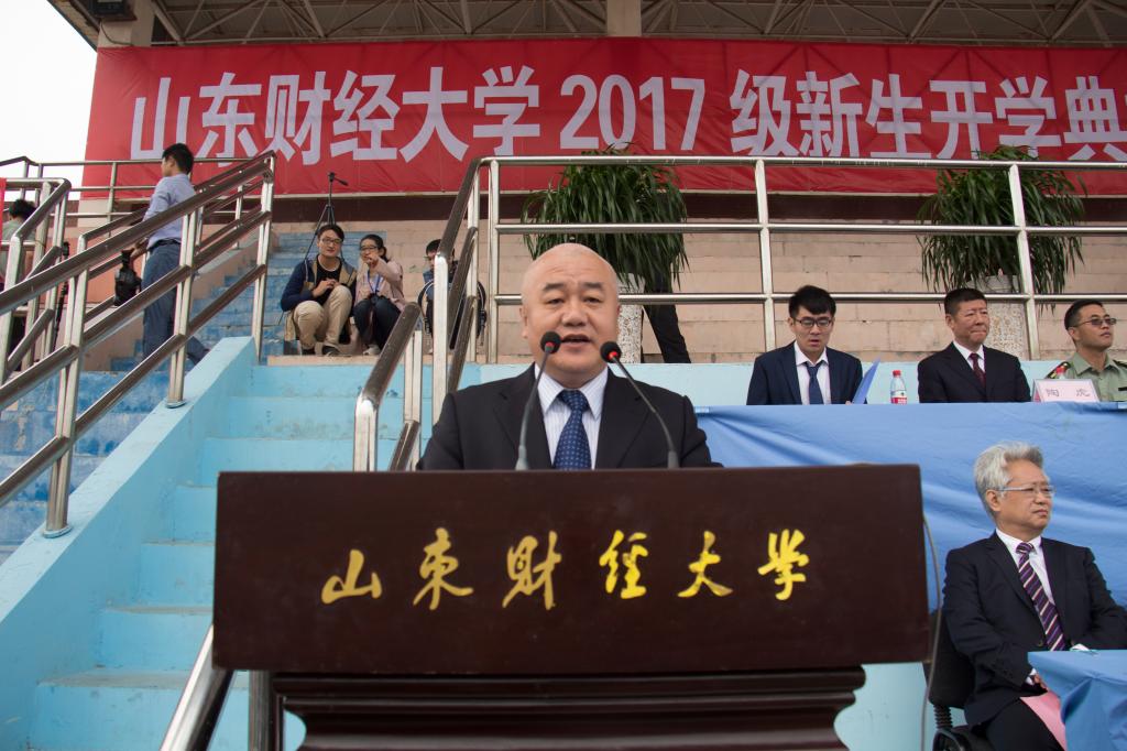 在大会中,山东省教学名师、博士生导师、曾荣获“山东高校十大师德标兵”提名奖的我院副院长李国锋教授作为教师代表进行了发言,他寄语财大学子,多读书、立远志、善管理,敢于做时间的主人。