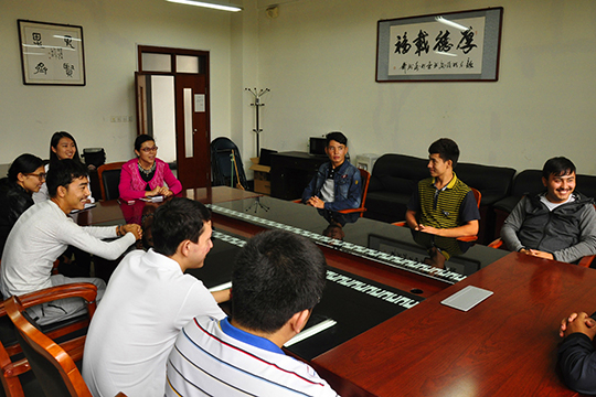 首先,热依拉与同学们亲切问候并作简短的自我介绍。其次,热热依拉请同学们自我介绍并说明自己学习、生活、家庭情况。然后,对于同学们提出的困惑与生活学习中的困难进行详细解答,并表示会尽力帮助同学们解决问题。最后。热依拉向大家提出新的希望,希望同学们在学习过程中可以克服地域与生活中的不适;希望同学们可以完成英语四级、计算机等级考试以及MHK考试;希望同学们可以顺利毕业后建设家乡。同时,热依拉也表示,在我校交流期间会经常来看望同学们,并且希望可以组织全校性的民族座谈会来了解和帮助更多的少数民族同学。