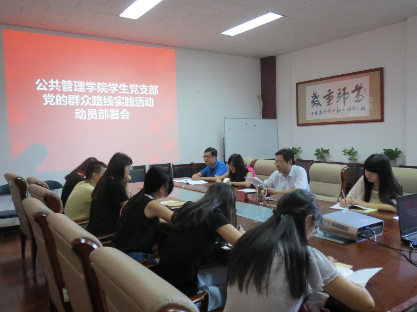 9月16日下午,公共管理学院召开了2013学生党支部党的群众路线实践活动动员部署会,学院党总支书记王有志、学生辅导员李广华老师及各学生党支部书记参加了会议