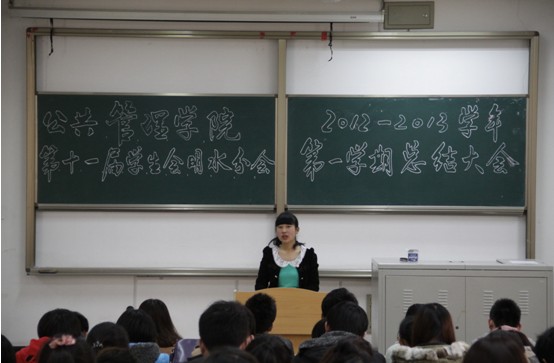 3月21日下午3点,公共管理学院第十一届学生会明水分会2012—2013学年第一学期总结大会在明水3101教室举行。学生会主席团、各部部长、副部长、干事出席了本次大会。会议由秘书长姜婷主持。