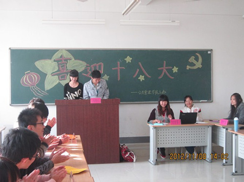 11月8日下午,公共管理学院举办的“喜迎十八大党史知识竞赛”在圣井校区1309成功举行。出席本次活动的有学生处有关老师,圣井校区辅导员老师及全体同学。