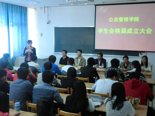 10月18日下午2点四十分,公共管理学院第十一届学生会成立大会在学校燕山校区2303教室举行。出席会议的有我院党总支书记王有志、副书记周炎,团总支王恩娟、李昭娜、李广华老师以及学生会全体成员。