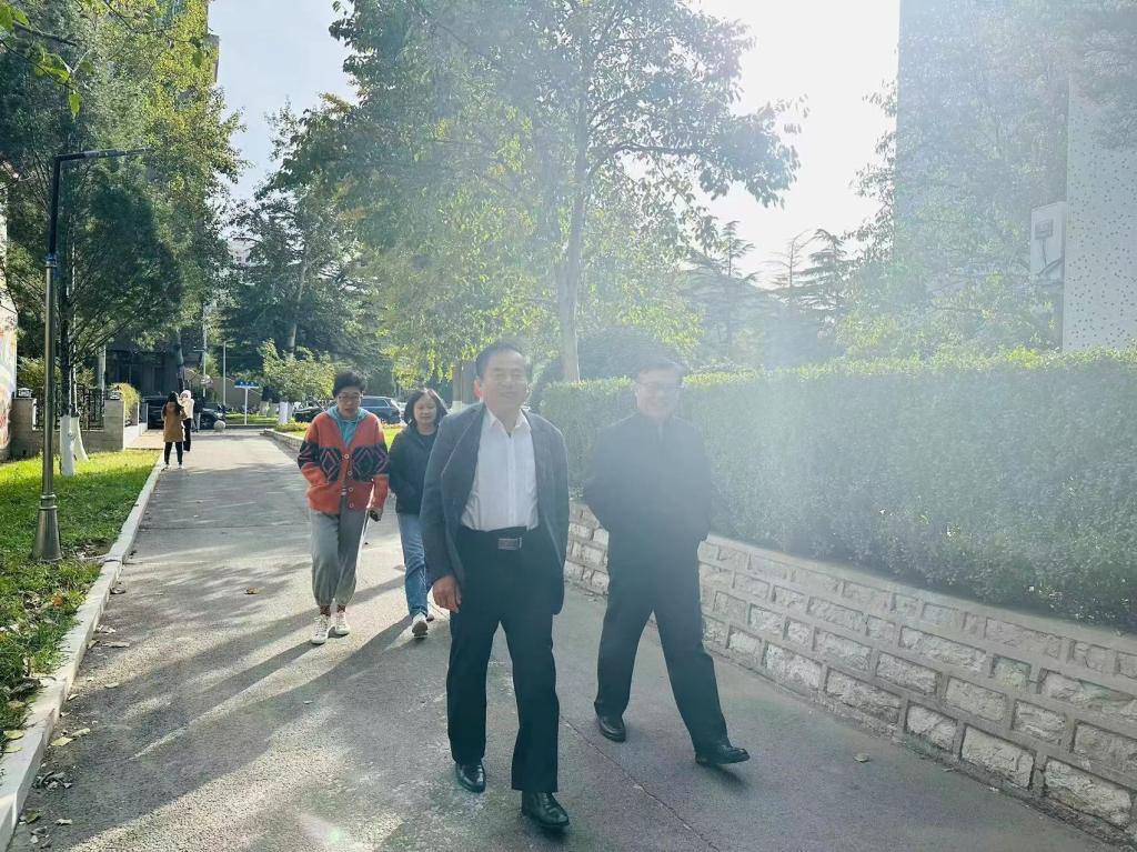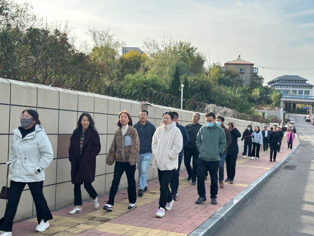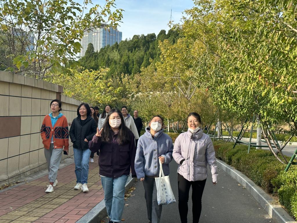 学院教职工从四号教学楼出发,沿学校西北门——二环东路——荆山北街一路步行至鳌角山山体公园。深秋的山体公园秋高气爽,景色宜人,老师们一边攀爬交谈,一边拍照留念,一路上充满欢声笑语。最后,老师们在山腰观景平台欣赏周边风景,畅谈工作生活体会,合影留念。