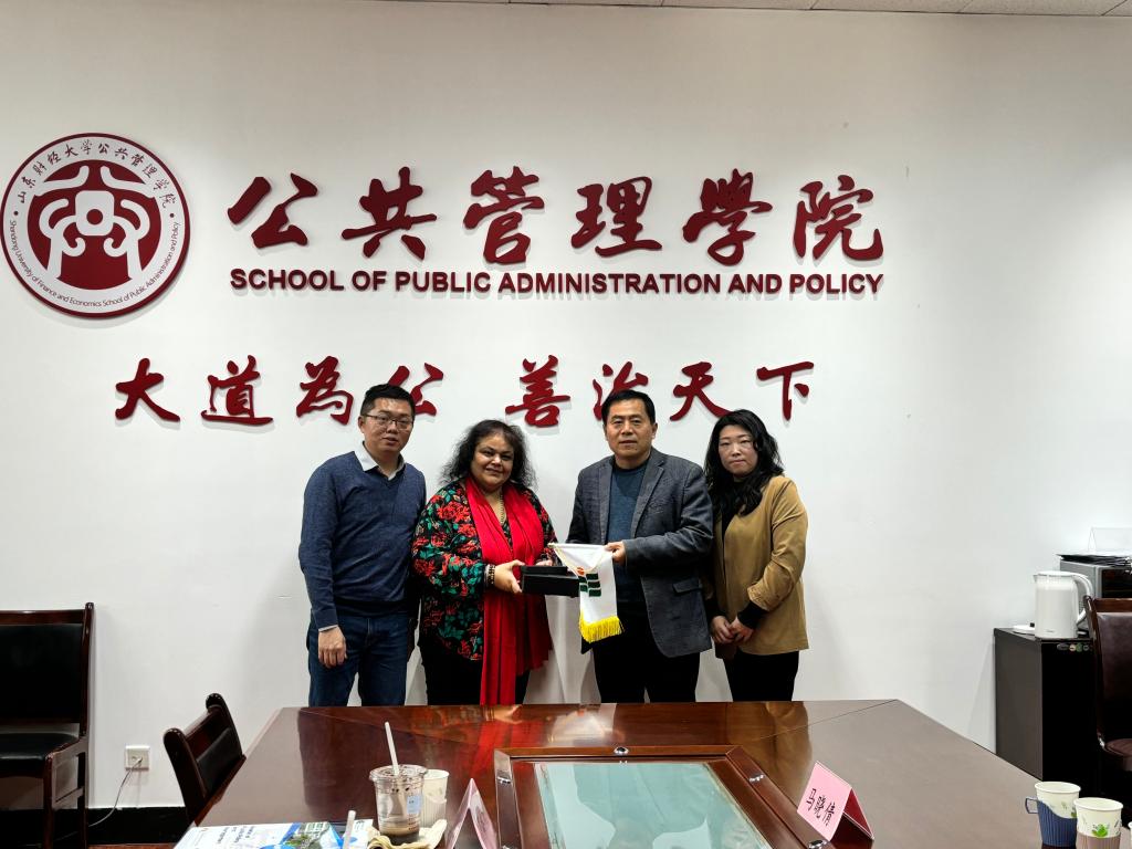 首先,学校国际交流与合作处马晓倩副处长介绍了我校和香港教育大学的合作背景和合作方向;接着,肖汉宇博士介绍了香港教育大学社会科学与政策研究学系的专业设置、办学特色、主要课程、研究方向和就业实习等方面情况,着重介绍了一年制公共政策及管理硕士(Master of Public Policy and Management)项目办学和申请情况;Lina Vyas博士介绍了面向我院学生的奖学金政策和相关支持措施,并欢迎我院学生赴香港教育大学进行学习与交流。随后,双方就高层次人才培养、硕士项目申请以及赴港学习生活等相关问题进行了自由交流和讨论。曲衍波副院长感谢香港教育大学老师们的详细介绍,并代表学院表达了希望与香港教育大学能在学生和教师互访,学术合作和国际会议等方面进一步深入合作。会议最后,Lina Vyas博士代表香港教育大学向我院赠送礼物。