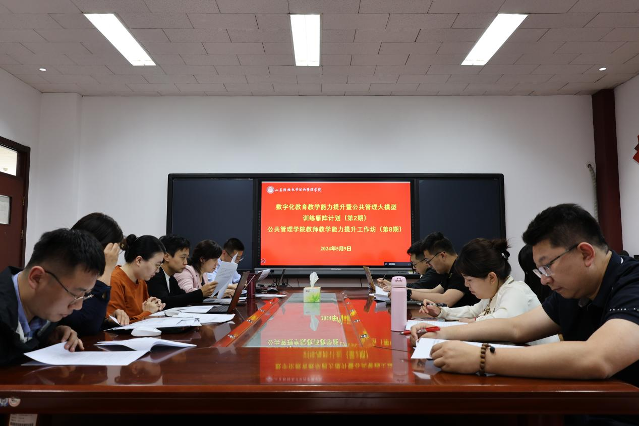 为进一步提升我院教师的数字化素养,推动教学改革创新,5月9日下午,学院举办了数字化教育教学能力提升暨公共管理大模型训练雁阵计划(第2期)、公共管理学院教师教学能力提升工作坊(第8期)。本次活动以“人工智能赋能教育教学”为主题,副院长罗微主持,劳动与社会保障系主任徐宏、城市与土地资源管理系主任韩琭、政府管理系副主任王龙以及各系教师代表参与会议。