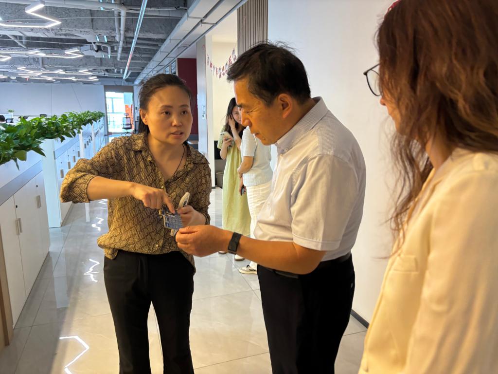 任春霞对张红旗一行的来访表示欢迎,并介绍了镕铭微电子济南公司的发展历程、业务领域、人才培养及行业优势进行了介绍。