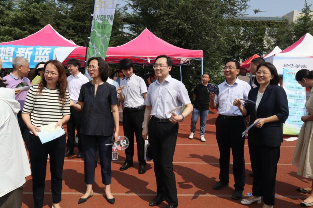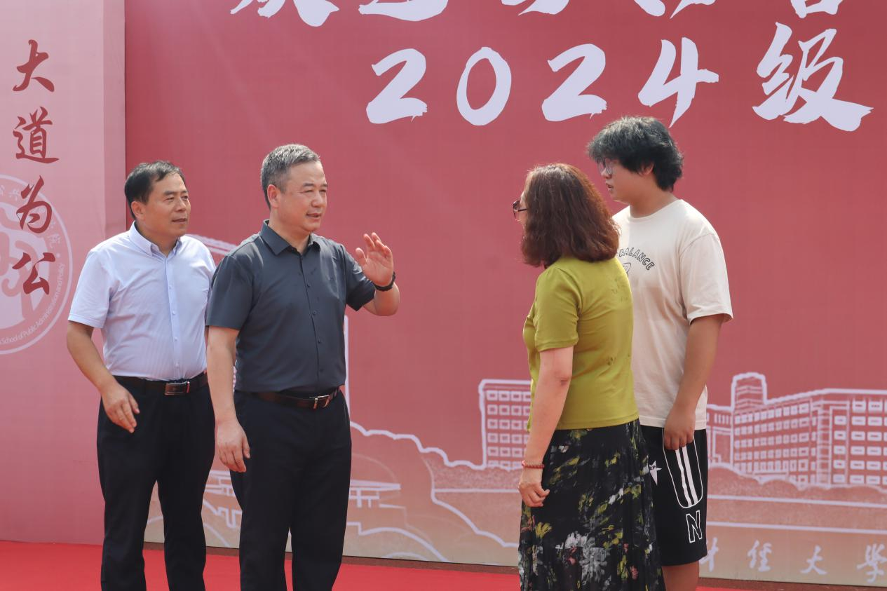 校党委书记查玉喜率领学校领导班子,在各职能部门负责人员的陪同下,来到公共管理学院迎新现场视察工作,对学院迎新工作给予高度评价,并与新生和家长进行亲切交谈,了解他们的需求和期待。