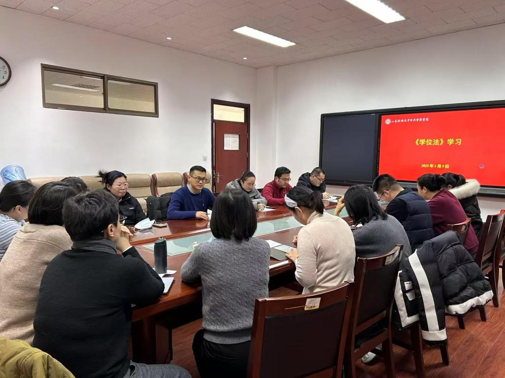 贾海彦指出,《学位法》的颁布实施,对于提升研究生教育水平有重要意义,对研究生教育质量提出了更高要求,标志着我国学位制度进入了新的发展阶段。下一步,学院将按照《学位法》要求,系统梳理相关制度文件,对学位评定分委员会章程、学位授予工作细则、学位授予标准,以及研究生导师管理办法、人才培养方案、学籍管理规定等进行全面自查。研究生导师要高度重视,深入学习《学位法》有关要求,严格遵守学位授予有关要求,切实保障学位授予质量。