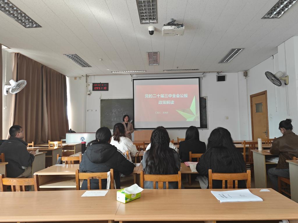 为深入学习贯彻党的二十届三中全会精神,推动学院高质量发展与国家战略同频共振,12月20日下午,公共管理学院院长贾海彦在2408教室为2023级社会保障硕士研究生讲授专题党课。