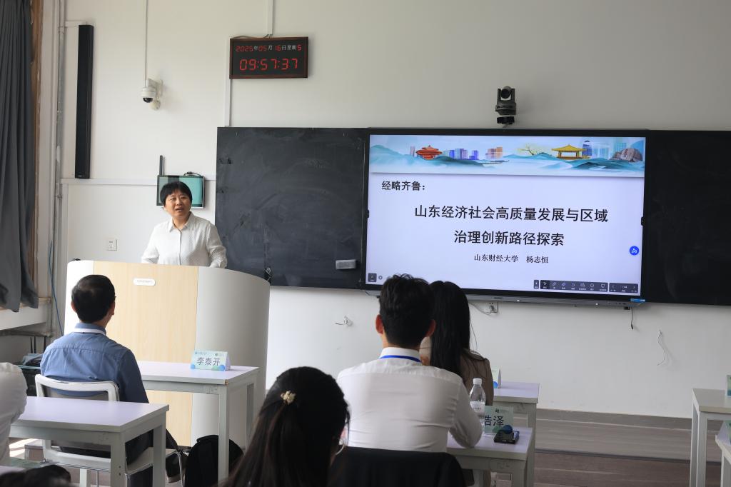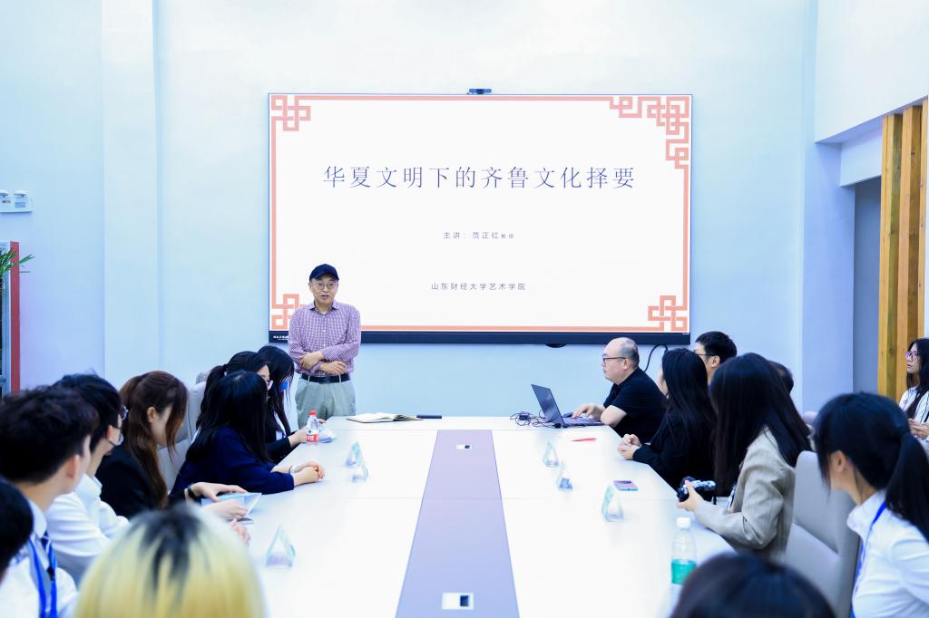 访问期间,学校围绕学术深耕与文化浸润两大主线,精心策划系列活动。交流团参观了校史馆、图书馆、海岱美术馆,感受山东财经大学的深厚文化底蕴与学术积淀。围绕文化齐鲁、经略齐鲁、公共治理等主题展开研讨,拓宽专业视野,提升学术思维水平。通过寻声觅乐、漆扇制作、声乐展演等联谊活动,促进两校学子交流,增进文化认同与情感共鸣。登临泰山之巅、探访“三孔”圣地、品鉴省博珍藏,在文化研学中追溯中华文化根脉,领略齐鲁文化精髓。