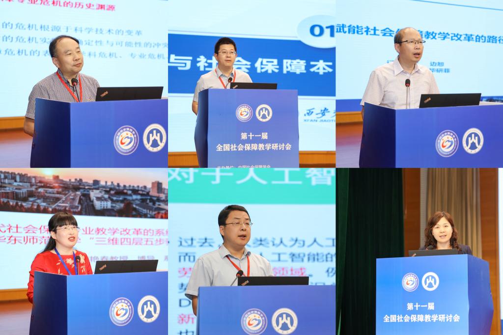 主旨报告环节由丁建定主持。厦门大学教授高和荣深入剖析社会保障专业面临危机,提出基于智能社会、长治久安、国家治理和新文科的知识创新路径。西安交通大学教授王立剑表示劳动与社会保障专业要厚基础、强数理、重实践,培养更多适应未来发展需要的高素质人才。辽宁大学教授边恕指出要加速数字要素融合渗透,创建人机协同课堂教学模式,推动社会保障学科发展和人才培养质量提升。华东师范大学教授曹艳春以华东师大“三维四层五步骤”改革实践为例,分享了人工智能时代社会保障专业教学改革的系统路径。浙江大学教授刘涛表示数智时代,知识观变革给传统教学带来挑战,教师需转变为学习的领导者和合作者,培养学生信息筛选能力。山东财经大学教授徐宏提出要深化“社会保障+人工智能+大数据”交叉融合,打造财经特色高水平社会保障人才培养体系。