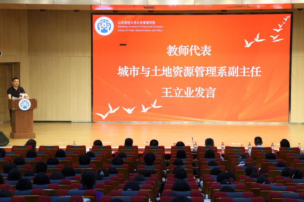 (通讯员 张梓盈 肖含玉 吕晓萌 张晟昊)秋色浩无际,风露喜晴空。9月11日下午,公共管理学院2025级新生开学典礼在章丘校区举行。学院党委书记田远、院长贾海彦、副书记许薇、副院长罗微、姜琪,教师代表、城市与土地资源管理系副主任王立业,全体辅导员及352名本科新生、55名研究生参加典礼。典礼由学院党委副书记许薇主持。