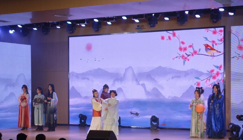 第二篇章“执梦逐光·绘青春”为青春梦想注入活力。情景舞台剧《反诈银行》寓教于乐,为新生带来一堂别开生面的安全教育课;拉丁舞《Latin girl》舞步热情奔放,尽显异域风情;和声合唱《夜空中最亮的星》旋律动人,引发全场共鸣,激励学子勇敢追梦;古今风尚秀《衣冠承古·秀领今朝》与扇舞《万疆》,展现了古今青春风华的对话,激发了青年学子的家国情怀。