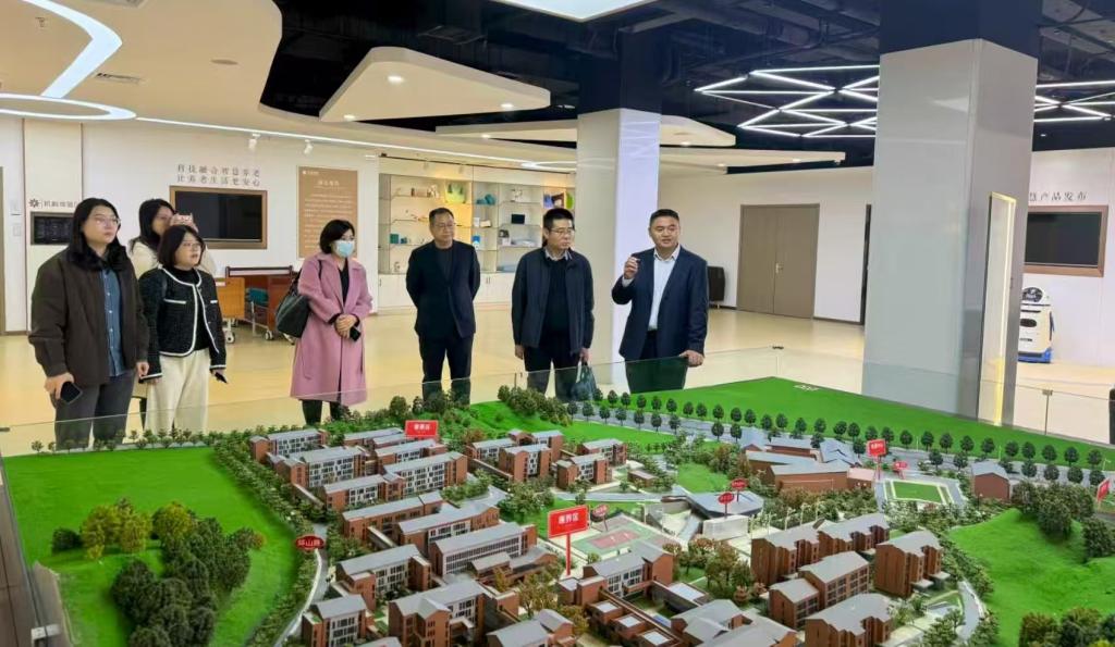 在金龄健康相关负责人的陪同下,公共管理学院一行参观了山东济南养老服务中心展厅及相关服务场所。负责人详细介绍了金龄健康的发展历程及其在养老事业、养老产业、康养旅居、培训教育四大板块的布局与发展情况。随后,学院一行深入现场了解了普惠养老区、康养专区、医护区及培训中心的功能定位、专业设施及服务特色等,对该中心全周期、多层次、专业化的康养服务体系有了全面认识。