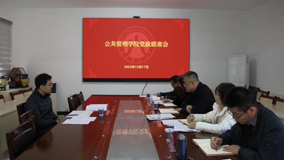 12月17日上午,校党委委员、副校长彭红枫到公共管理学院指导党委会和党政联席会会议。公共管理学院领导班子成员参加会议。