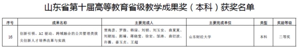 喜报|公共管理学院获山东省第十届高等教育省级教学成果奖二等奖