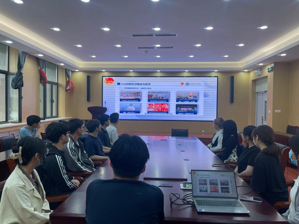 5月30日,学校团委副书记邢夏子与中国石油大学(华东)团委书记季林海,代表山东在全国高校共青团改革沙龙进行专场共青团工作经验做法分享。学院积极响应,组织2021、2022级团支书在圣井校区8-128会议室集中观看,其余同学通过线上同时开展学习。