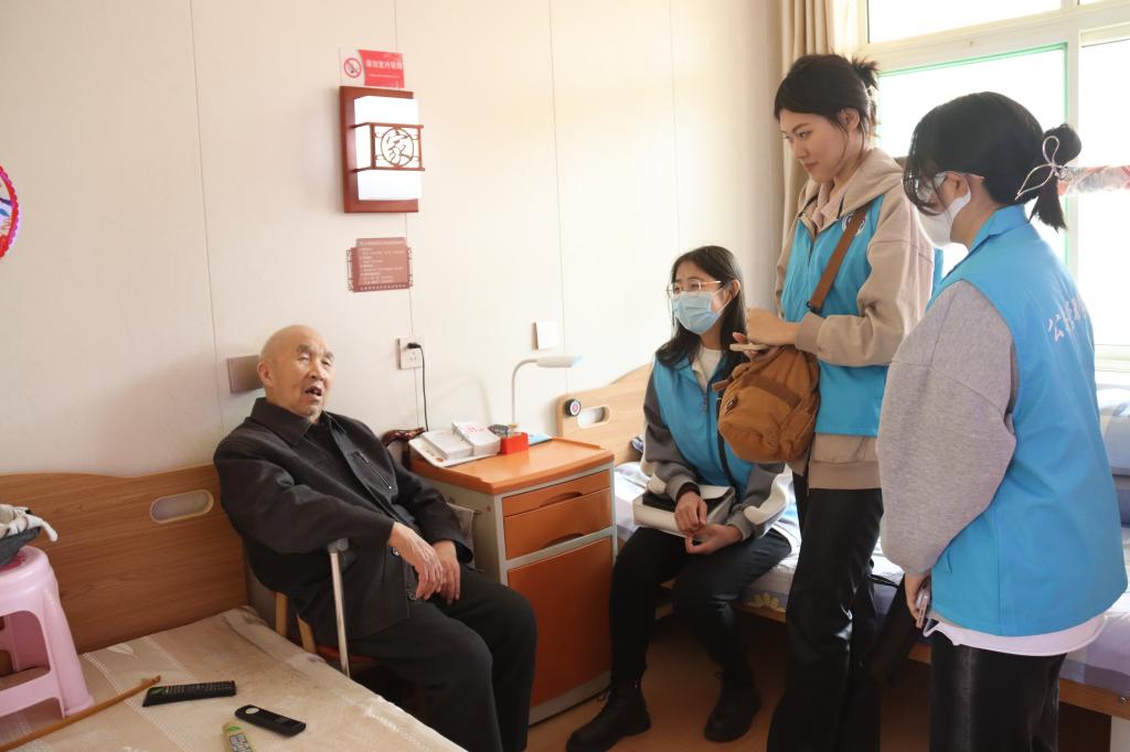 随后,志愿者们自发前往老人们的住处探望老人,同老人们聊天话家常,关心询问老人们的身体健康与生活状况,并帮助老人做一些力所能及的家务事。在此期间,有志愿者向一位爷爷问及他年轻时的经历,爷爷滔滔不绝地讲述起战争的混乱与残酷。他双眼发亮,神情悲愤,仿佛重回那段激情飞扬的青春岁月。