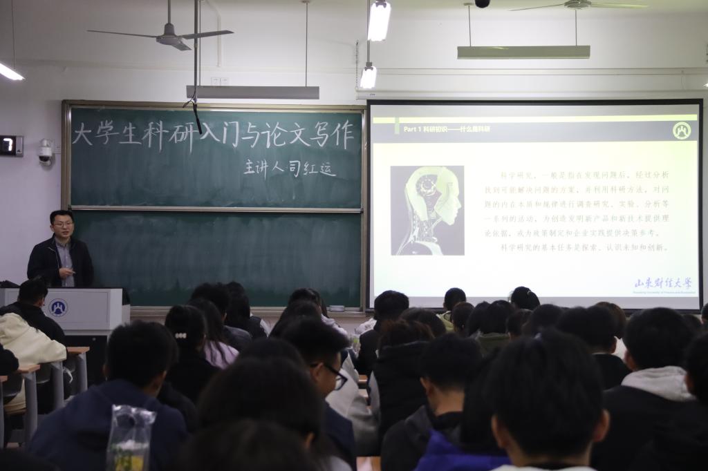 (通讯员 张心仪 徐施宁  摄影 嵇朋乐)11月2日晚,我院大学生科研入门与论文写作讲座于圣井校区8112教室顺利举行。此次讲座由我院城市与土地资源管理系副主任司红运主讲,我院2021级、2022级本科生参加。