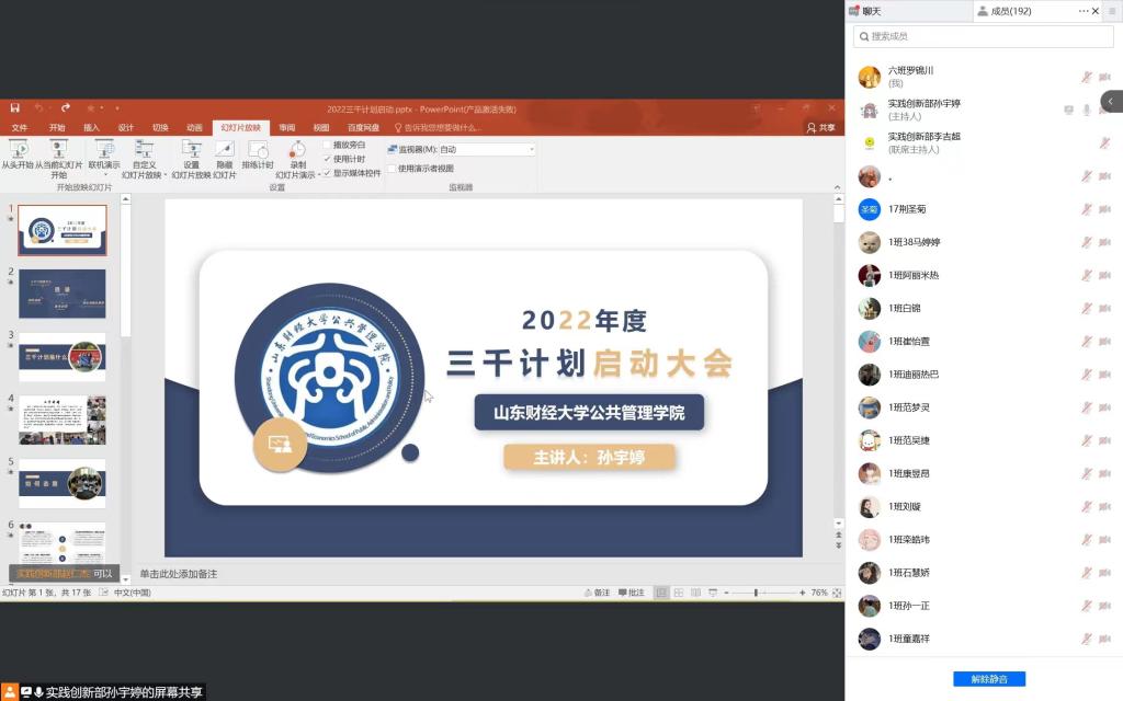 (通讯员 罗锦川)行是知之始,知是行之成。4月14日晚,我院实践创新部通过腾讯会议成功举办“公共管理学院三千计划启动大会”,本次会议由实践创新部部长孙宇婷、副部李吉超同学主讲,全体2021级同学参加。