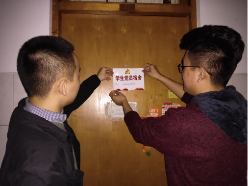 学院党委为每一个学生党员宿舍分发了“学生党员宿舍”门牌,并且给每一位学生党员分发了“学生党员床位”的贴纸,各位党员们积极响应,纷纷将其悬挂在宿舍门和床头上。本次挂牌活动共涉及20多个宿舍,覆盖了46名学生党员,一张张象征着党员身份的指示牌时刻警示着各位学生党员们严格要求自己,充分发挥党员的先锋模范作用。董桂峰同学在悬挂“党员学生床位”时激动地说道:“挂牌之后要进一步地严格要求自己,讲党性,重品行,做表率,这次的挂牌活动是对学生党员的肯定和激励,这将督促我更好地为同学服务。”桂良根同学对本次挂牌活动十分重视,他表示:“党员宿舍挂牌使学生党员亮出自己的身份,挂牌就是一面旗帜,督促大家以身示范,从学习到工作,从宿舍到班级,创先争优,不断进步。”
