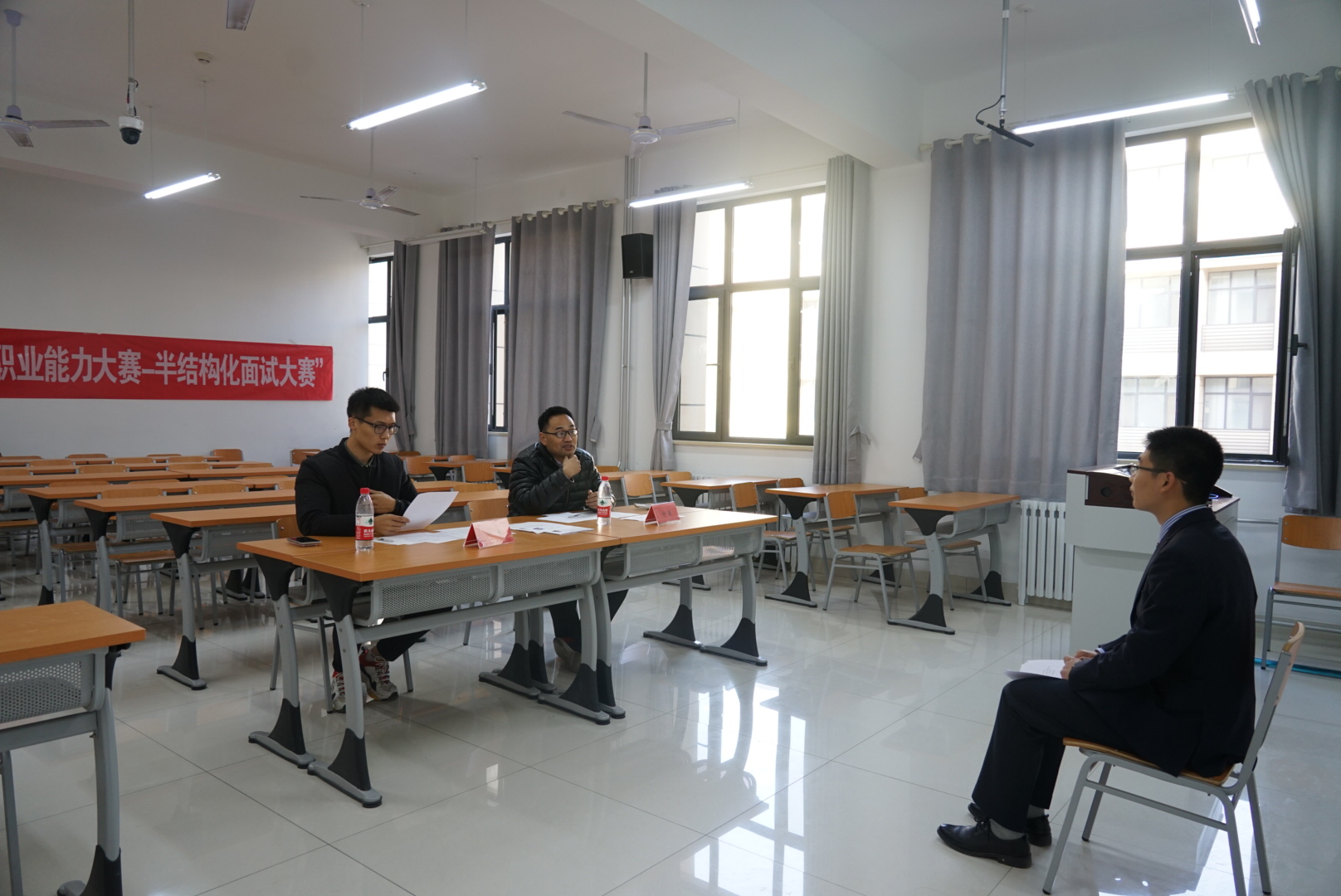 同时进行的半结构化面试比赛也精彩纷呈。参赛选手首先进行了精彩的自我介绍,随后,评委老师就学生的简历提出相关的问题,并对同学们面试中的表现给予评价和建议。参赛选手们面对问题积极思考,提出真知灼见,展现出极佳风采。