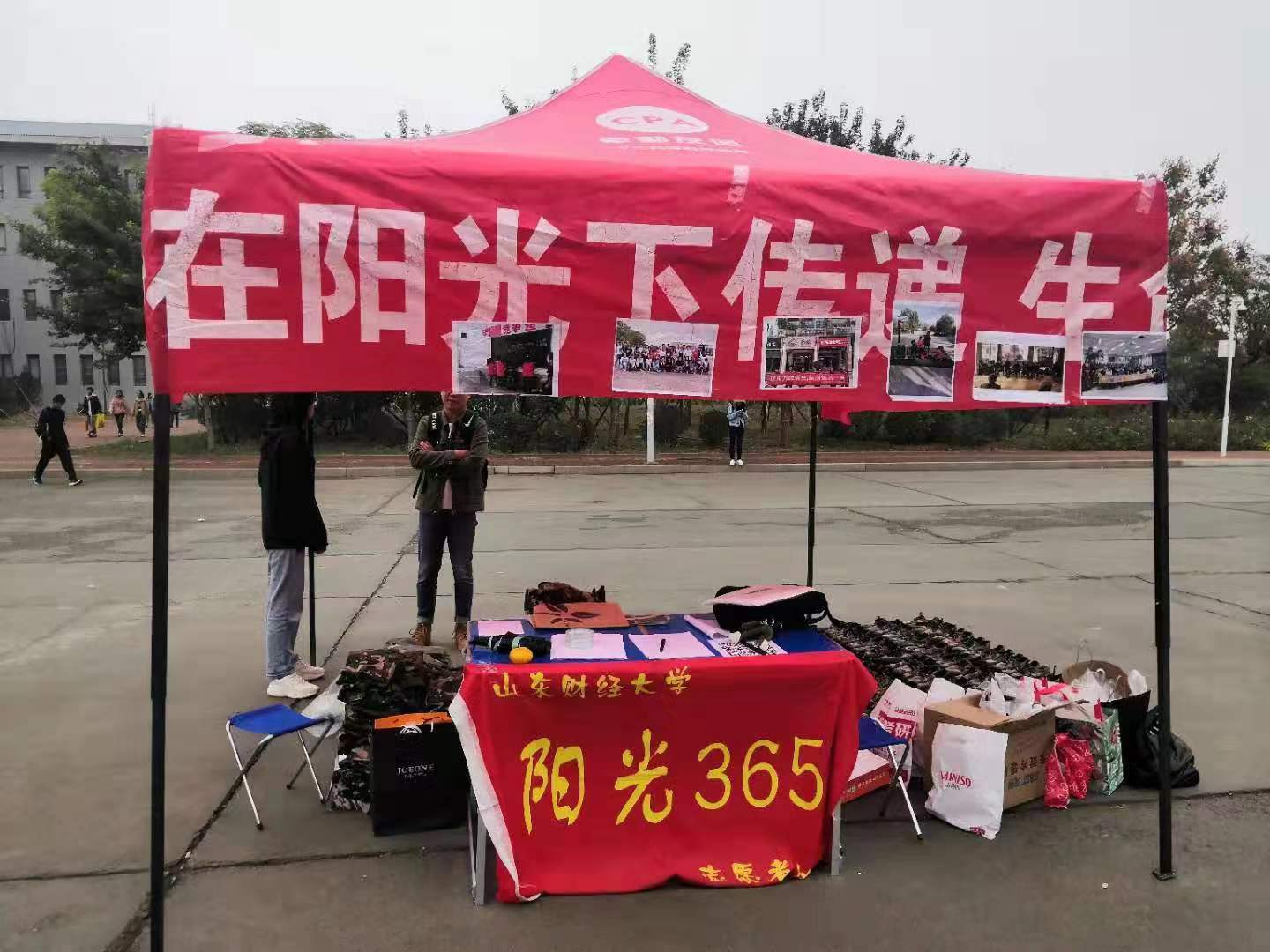 本活动是由山东财经大学公共管理学院阳光365志愿者协会策划,联合社会大型公益组织——黄河源阻泳志愿者协会共同举办的爱心公益活动。旨在通过捐赠闲置的军训衣物,使更多的、更需要衣物的人获得闲置衣物资源,使闲置衣物重获新生。