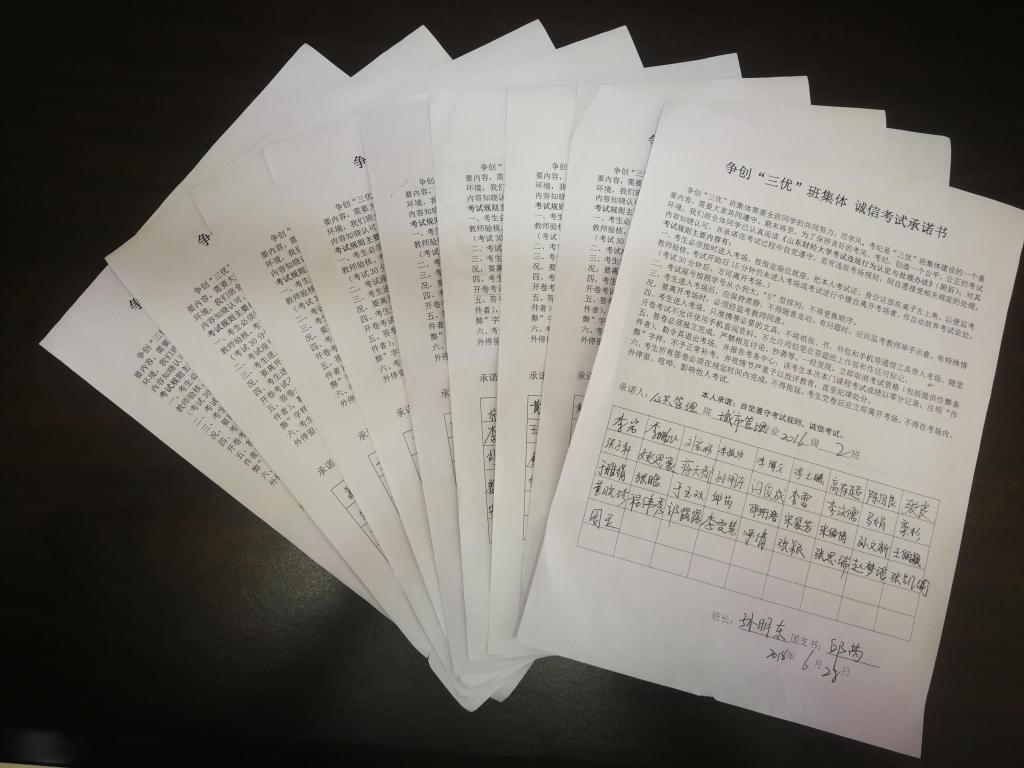 学院还组织全体学生在考试前宣读《山东财经大学考试违规行为认定与处理办法》,阅读并签署《诚信考试承诺书》,以端正考试态度,规范自身行为,表明对考场纪律的知晓、认可、遵守,以及对诚信考试的决心和信心。认真复习每一门功课,精心准备每一场考试,杜绝一切考试作弊行为,以诚信的态度对待每一场考试,用自己的行动维护学院的学风建设。
