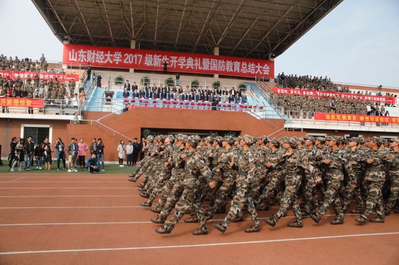 (通讯员 赵福荣 摄影 雷茜 刘田梦 王宏磊 郑璐)9月29日上午,2017级新生开学典礼暨国防教育总结大会在明水校区体育场胜利召开,这标志着为期14天的2017级新生军事训练正式落下帷幕。大会上,公管学子们矫健整齐的步伐、铿锵有力的口号、斗志昂扬的状态展现了我院新生朝气蓬勃的精神面貌,充分体现了我院党团委在本次军训工作中指导科学、组织得力。