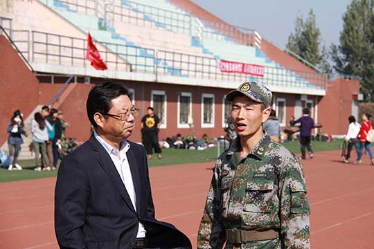 10月17日上午9时,我院党总支书记王有志、副书记周炎来到明水校区操场,检查我院新生军训情况。