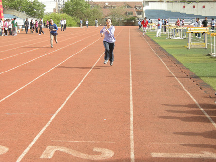 我院李昭娜老师,在800米比赛中勇夺第一,200米比赛中获得第二,她是这赛场上别样的风景。
