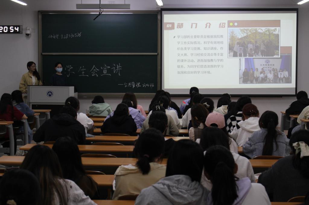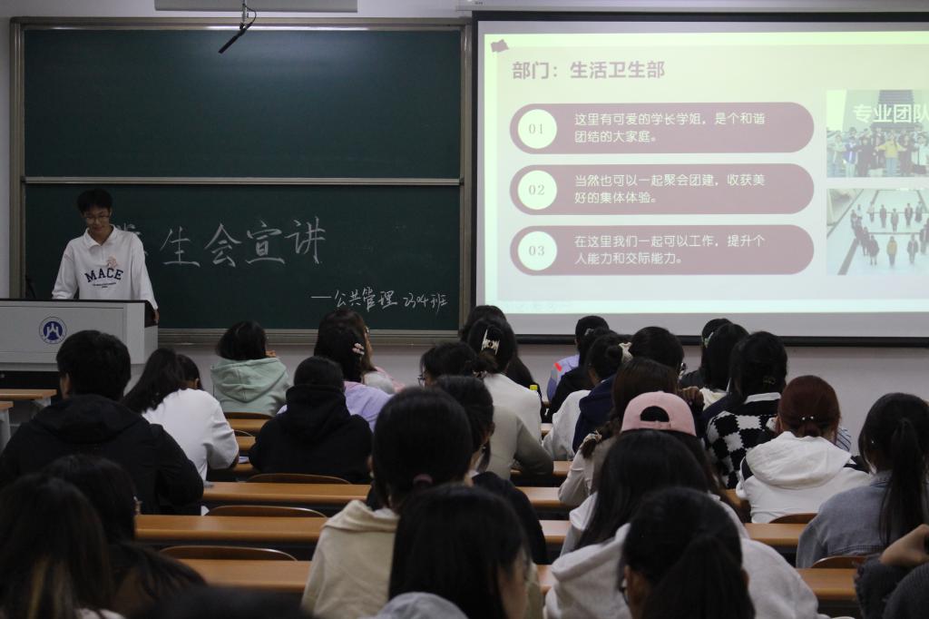 学生会既是一座展示自我的大舞台,也是一片结交志同道合好友的沃土,为丰富的大学生活锦上添花。相信此次宣讲将会吸引更多新力量加入学院学生会,为公共管理学院的发展贡献力量!