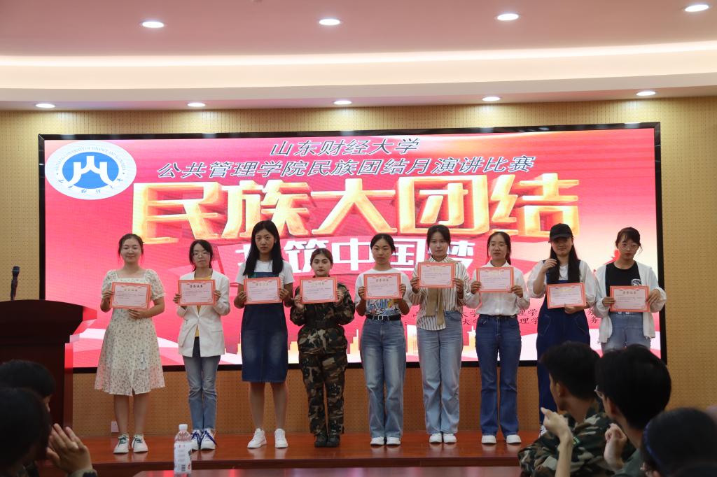 本次民族宣传月演讲比赛,推动广大学子树立民族意识、提高团结力,增进了各位同学对不同民族之间的了解与沟通。希望公管学子秉持民族团结意识,共同建筑公共管理大家庭!