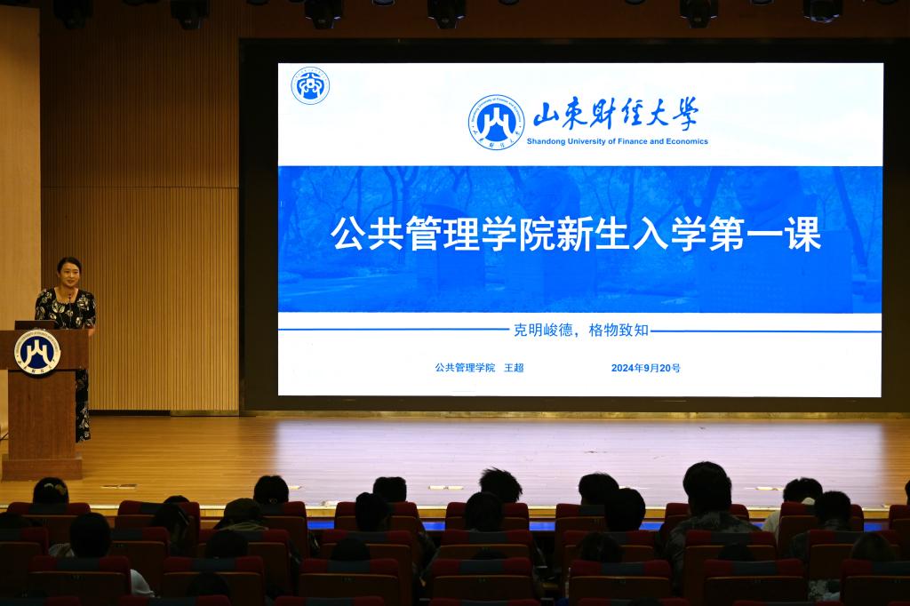 (通讯员 张心仪 摄影 王俊乔)大学是崭新的起点,也是人生的关键节点。为了使2024级新生尽快适应新的生活、新的状态,更好地了解公共管理专业,9月20日上午9:00,学院于圣井校区文化活动中心举办了新生入学第一课。此次会议由2024级辅导员王超主讲,学院2024级新生参加。
